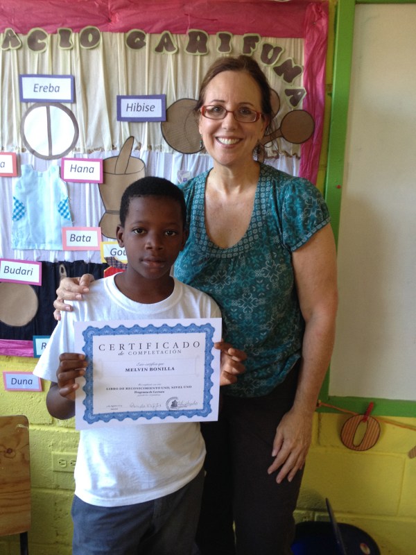 Melvin, proud to receive a well-earned certificate. He completed the first part of the new reading program in record time. He could not read before…..He can now!!