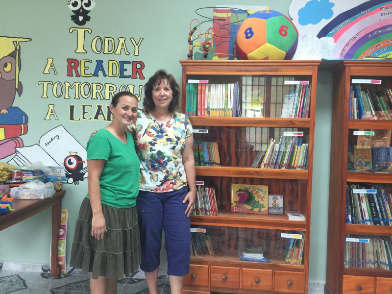 Iris Carranza the Directora of the Anne Fowler Bilingual School and I in the new library. It is beautiful!