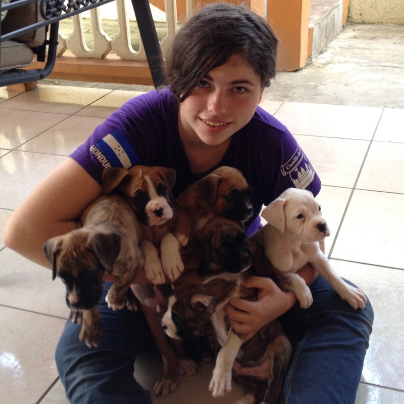 Nicole, my house guest this week with all six puppies. Lots of love, licks and puppy breath.